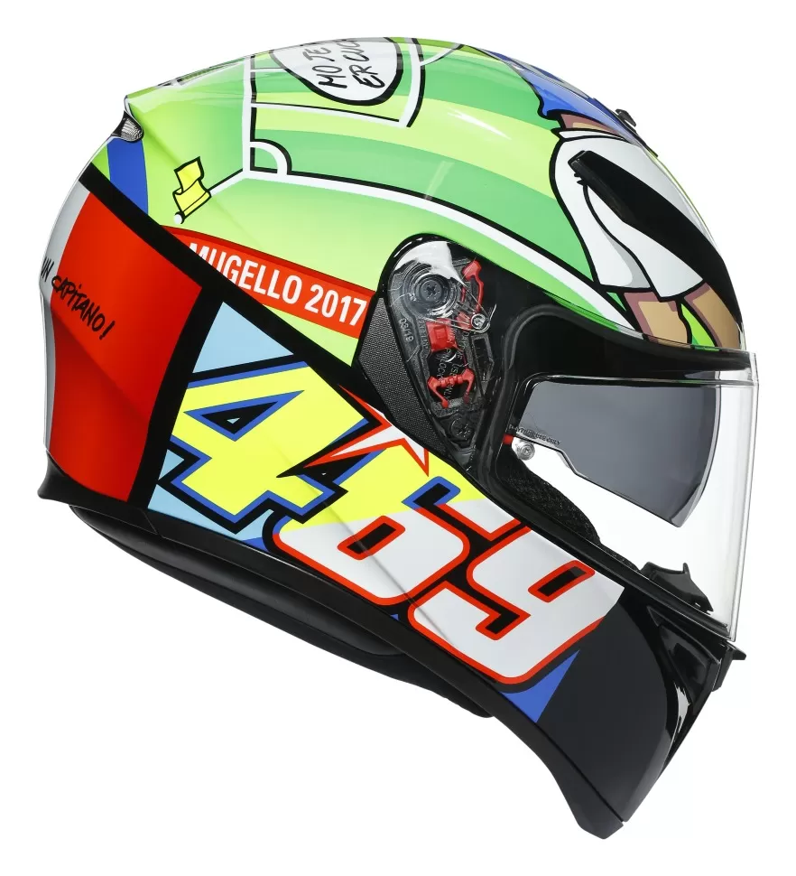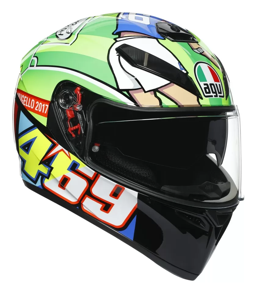 The AGV K3 SV Helmet builds on AGV’s extensive experience in designing the Pista GP and Corsa helmets as well as the legacy of the original K3 helmet. An aerodynamic shell shape is optimized for stability and aggressive aesthetics and features an integrated, compact rear spoiler to reduce turbulence. The narrow chin bar is streamlined to help the helmet cut through the wind at high speeds, further increasing stability.