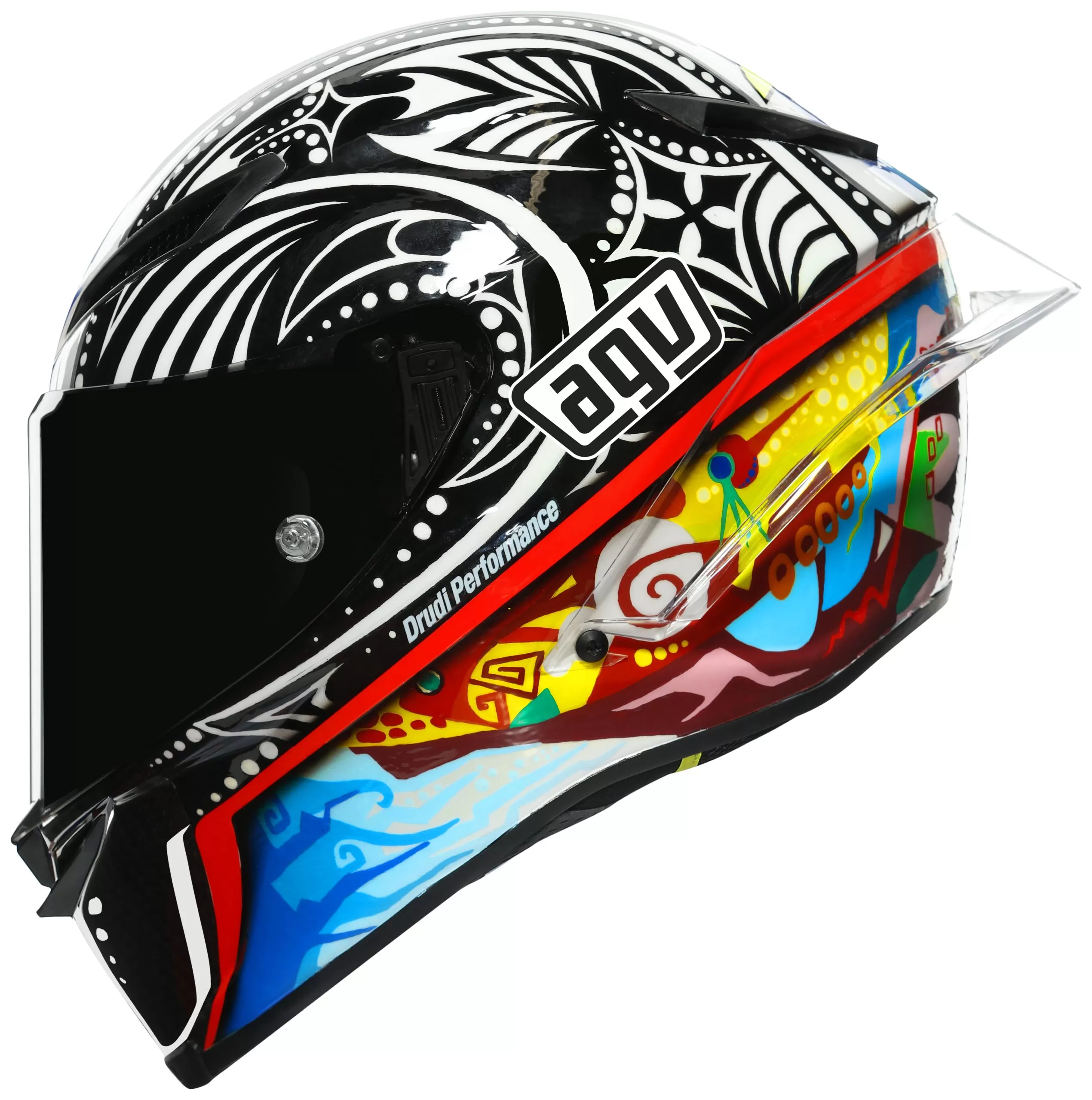 The AGV Pista GP RR Casci de Vale Helmet is an exact replica of helmets worn by world championship racers. It meets stringent FIM Racing Homologation standards and provides the highest level of protection, even against glancing impacts that can cause rotational motion. Forged carbon fiber molded into an innovative shape lets the helmet move through air effortlessly while also providing a different look compared to normal woven carbon fiber. AGV’s Integrated Ventilation System (IVS) uses 5 large front metal air vents and 2 rear extractors to let air pass through the helmet freely. Four shell sizes used across 7 different helmet sizes get a closer fitting shell compared to other helmets. The helmet was designed for an aggressive tucked racing position with a face shield allowing for a maximum vertical view and wide horizontal view. AGV’s patented Visor Lock System (VLS) decreases the chance that the face shield comes opens in a crash. With a fit developed for MotoGP racers, the Pista GP RR’s lining allows for an optimized fit and positioning on your head. Everything about the AGV Pista GP RR Carbon Performance Helmet is designed for high speed track performance.Â