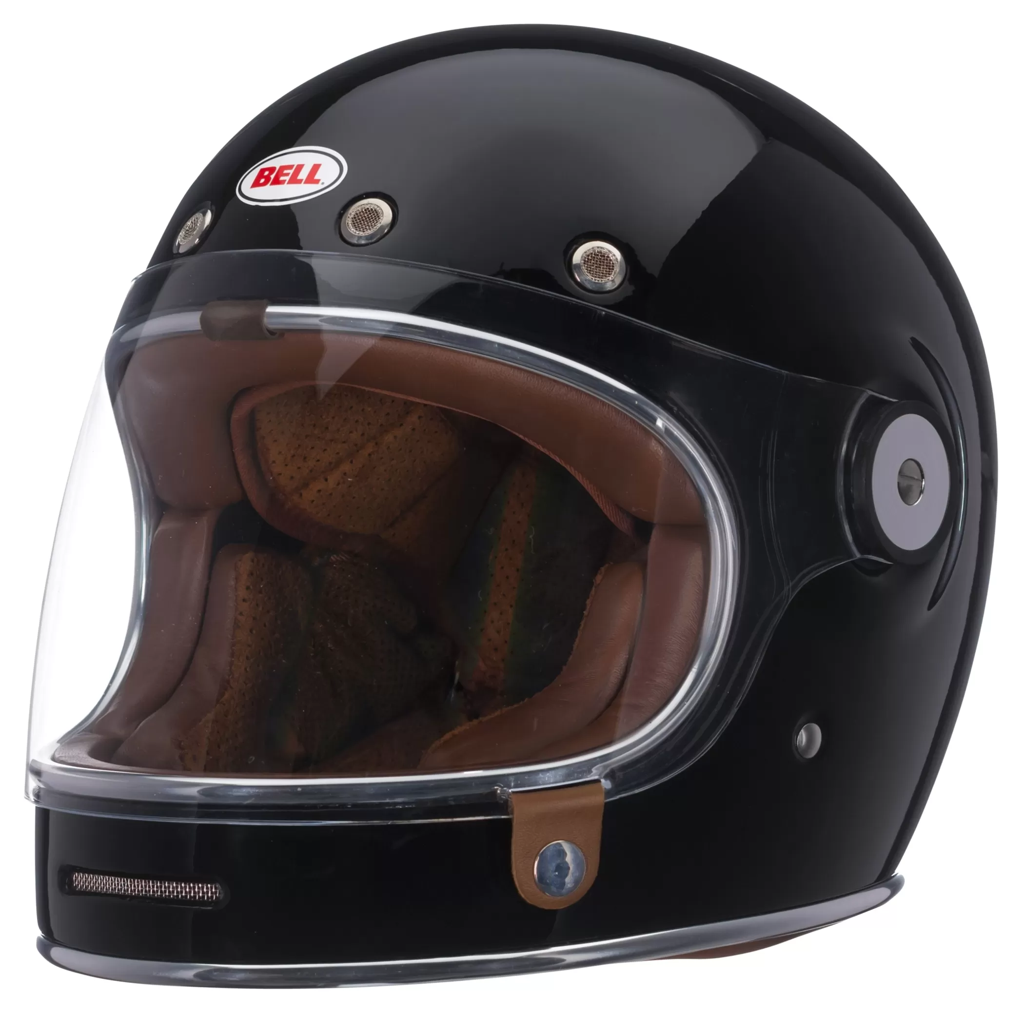 - The Black helmet has a brown interior liner and the face shield is equipped with a brown pull tab