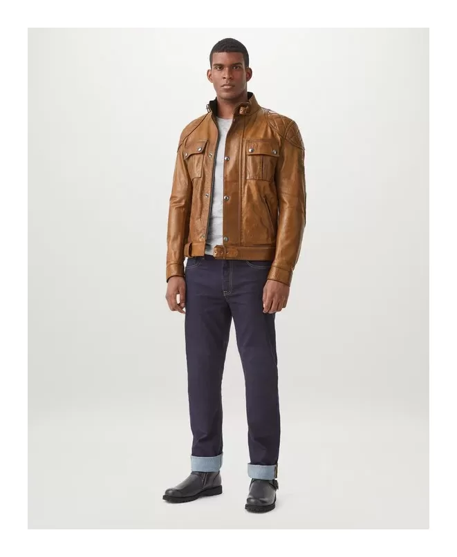 The Belstaff Brooklands Jacket keeps it short and sweet. Short sport style complements your cafe racer, modern classic or cruiser. Its persona has a distinct feel designed and developed for motosports of the past. The leather has a waxed finish and feels soft and supple, so the Brooklands Jacket can easily be worn both on and off the bike. Quilted stitch reinforcements at the elbows and shoulders improve both form and function. CE armor at the elbows and shoulders protect against impacts with the option to add in back armor into the rear pocket (sold separately).