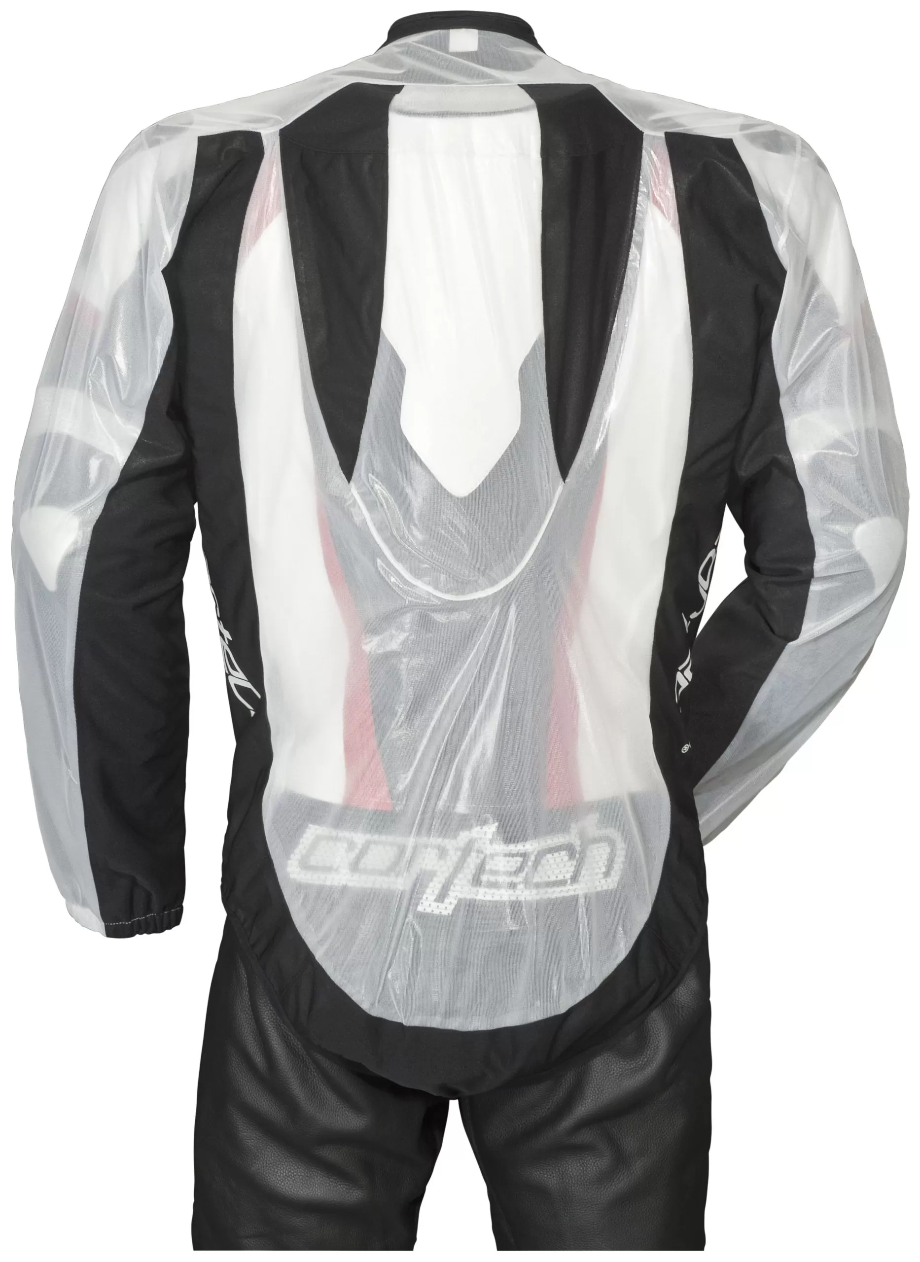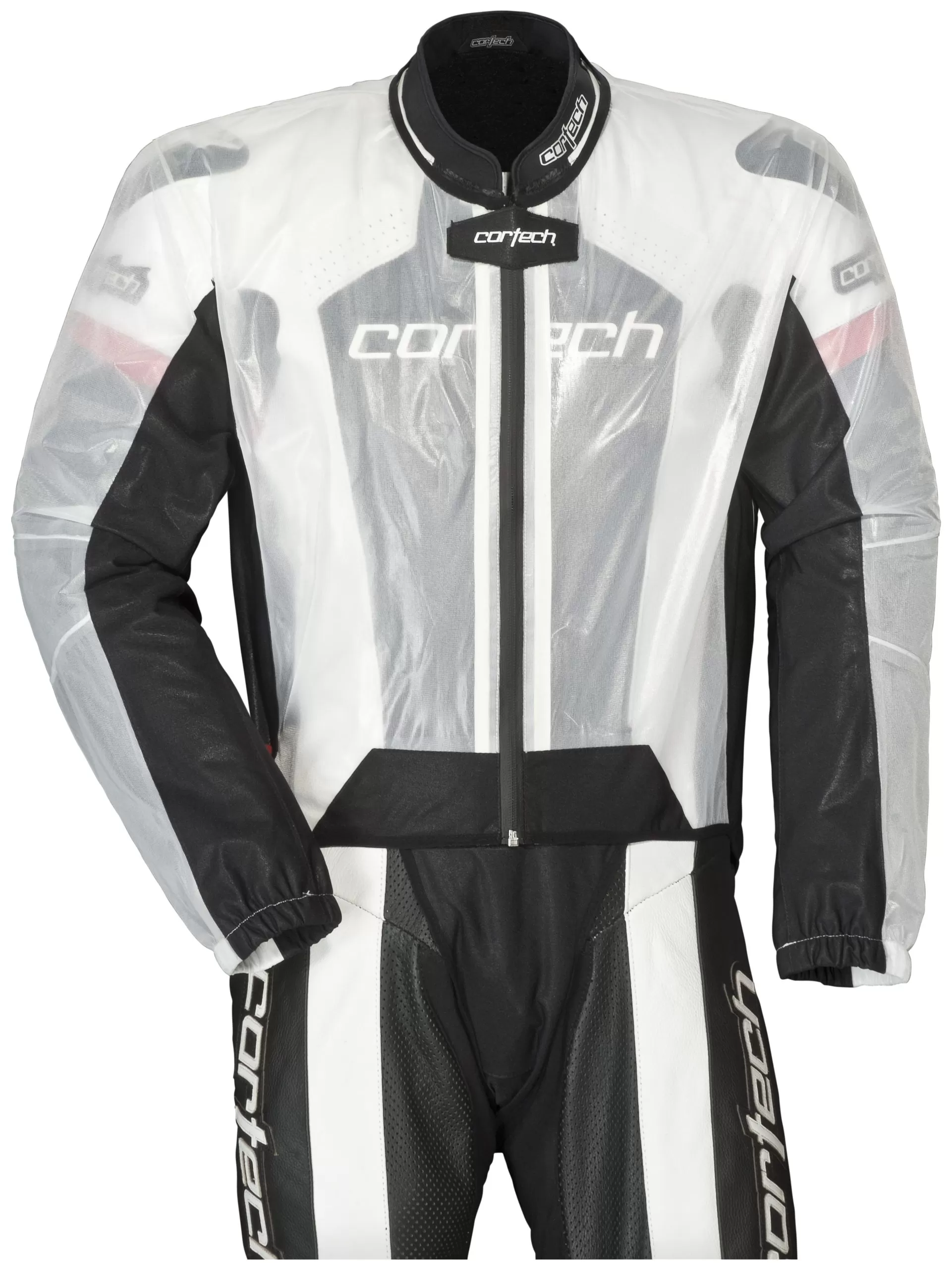 The Cortech RR Rainsuit Jacket is perfect to throw on when you are at the track and you’re ready to ride through the sprinkles. The clear, waterproof jacket has taped and sealed seams with stretch panels through the arms, back shoulder and sides. The back of the jacket is cut to fit a wide range of speed humps and specifically any Cortech speed hump. Keep your expensive race jacket clean and dry with the Cortech Road Race Rainsuit Jacket.