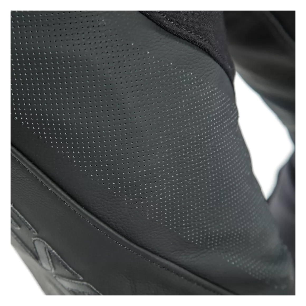 The Pony 3 Perforated Pants take the design and technology from Dainese’s highest spec racing leathers and transform them into a comfortable street- and touring-ready pant. Constructed from Tutu cowhide and stretch panels of S1 bielastic fabric, the Pony 3 Pants comfortably suit a wide range of riders Ā – from early a.m. canyon carvers to touring enthusiasts running tank to tank. When ambient temps climb, panels of perforation and the Nanofeel liner help riders keep their cool. External reinforcement at the knee is leather. Internally, Ā Pro-Shape hip armor and removable composite knee protectors are included, and the garment itself meets prEN 17092 certification as motorbike protective pants. Ā