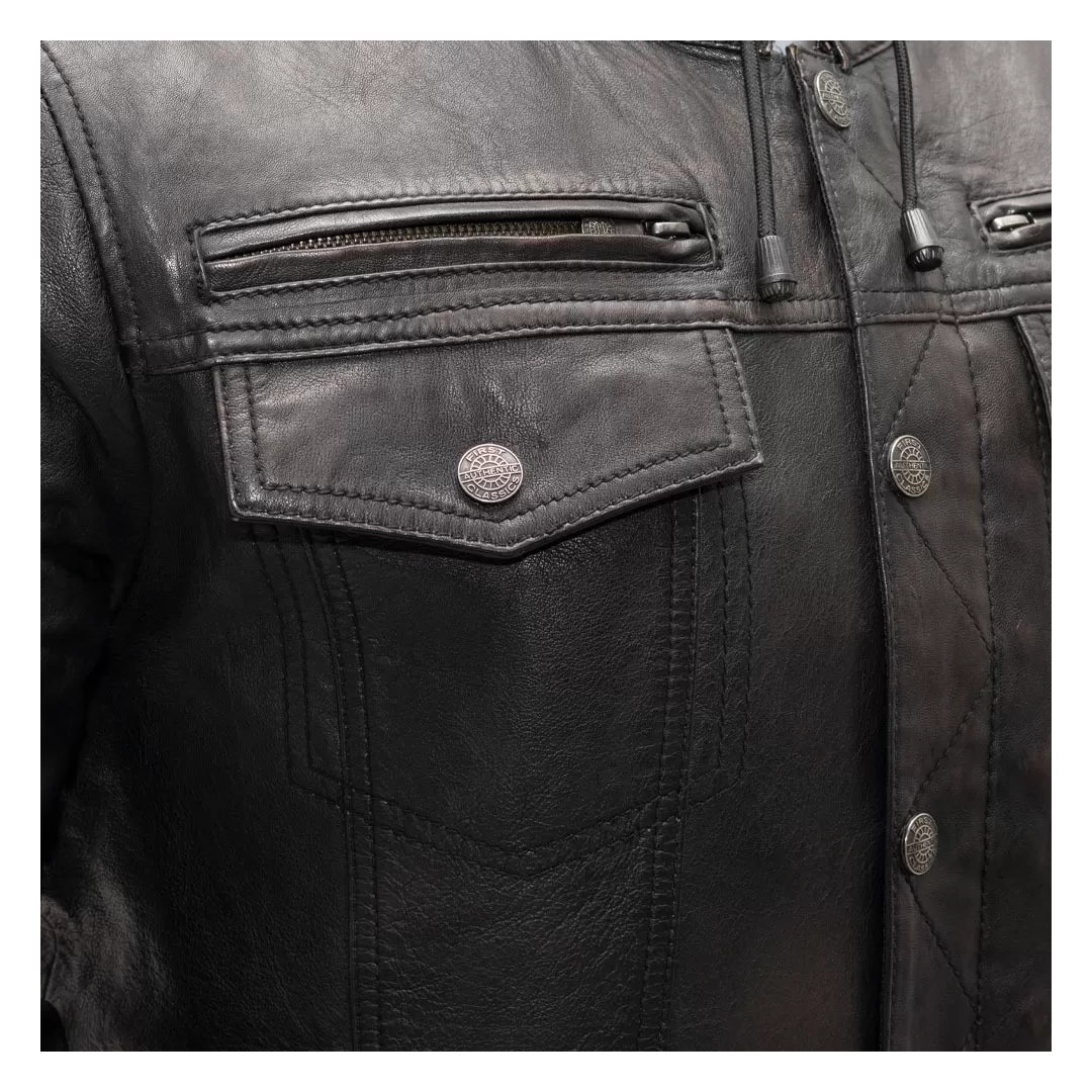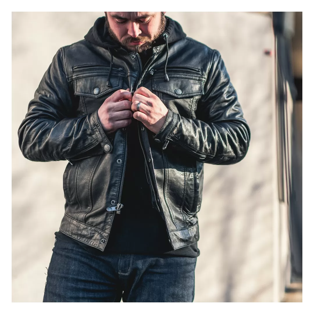Pop up the hoody when it is chilly outside if you wish to remain incognito, or remove it entirely. The Vendetta is a leather jacket with hints of that denim jacket you loved back in the day. Two chest pockets have flaps, and the hand pockets are thoughtfully arranged for ease of entry. Slap in some optional armor (sold separately) for impact protection. The Vendetta Jacket from First Manufacturing is there when you need it. Family first.