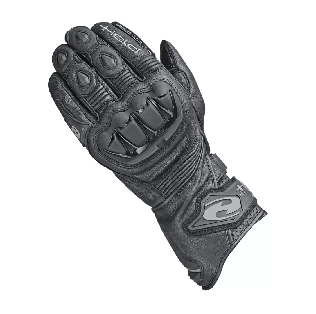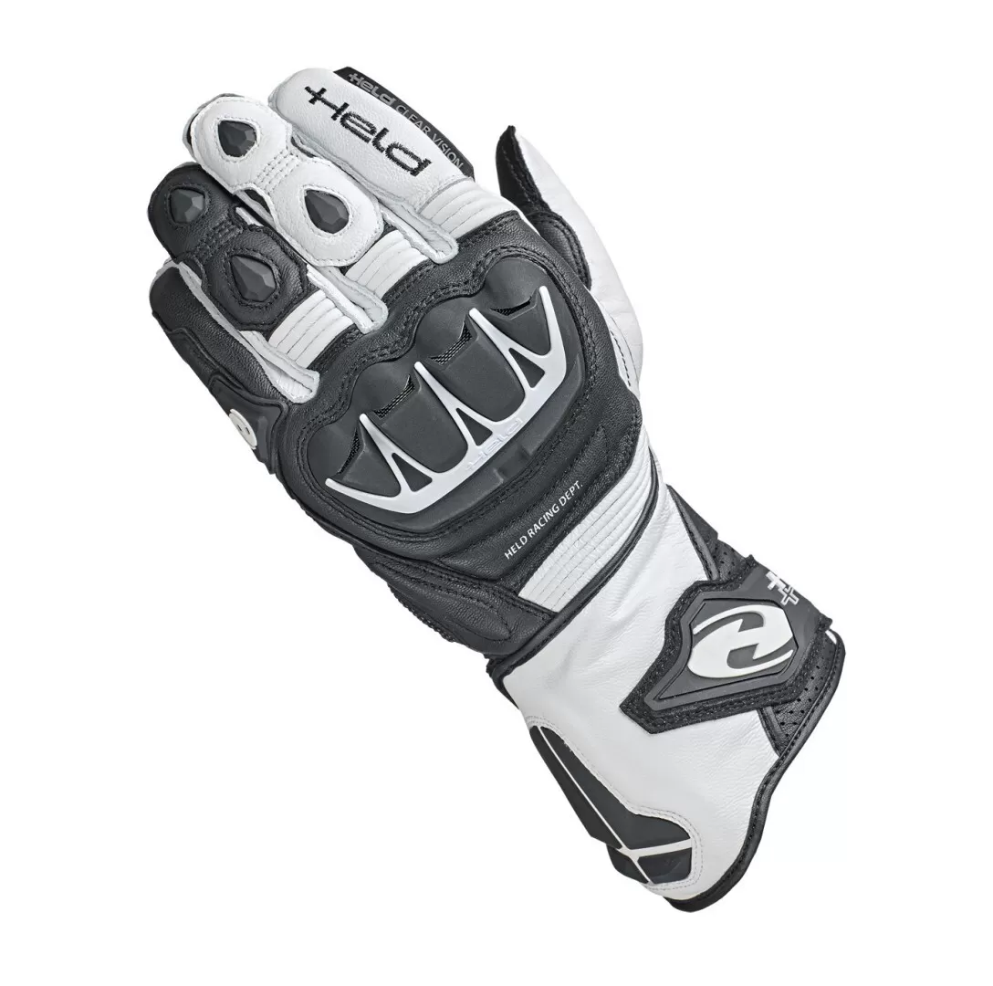 Suit up for your next ride with the Held Evo-Thrux II Gloves. Constructed with goat skin and kangaroo leather along with Aramid protection and hard knuckle plastic, these gloves will keep you protected and ready to go. The ball of the thumb is reinforced with SuberFabric material underlaid with Armaprotec for durability and abrasion resistance. The Evo-Thrux II Gloves also feature touch technology for ease of smartphone use.