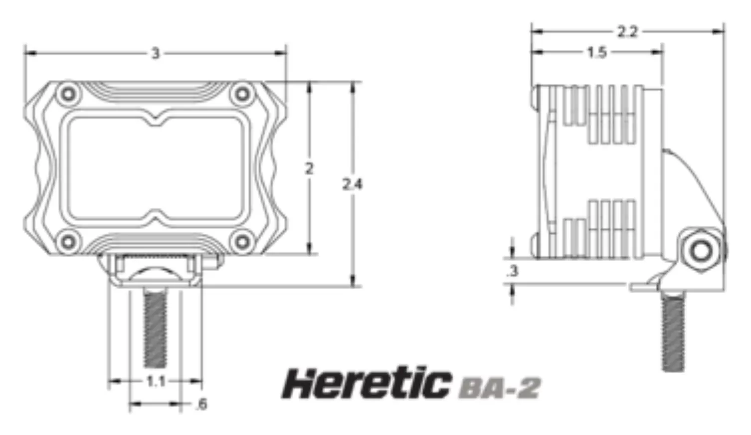 Heretic BA-Series Lights conveniently add illumination to just about any mounting situation. Reduced size “staple” light bars, pod or flush-mount varieties make the BA-Series work just as well as scene, ditch or chase lights as they do as forward-facing driving or flood lights. Regardless of size, configuration or style, Heretic LED lights pack the highest quality LED chips and circuitry into tough billet aluminum housings – balancing light output with excellent heat management.Â