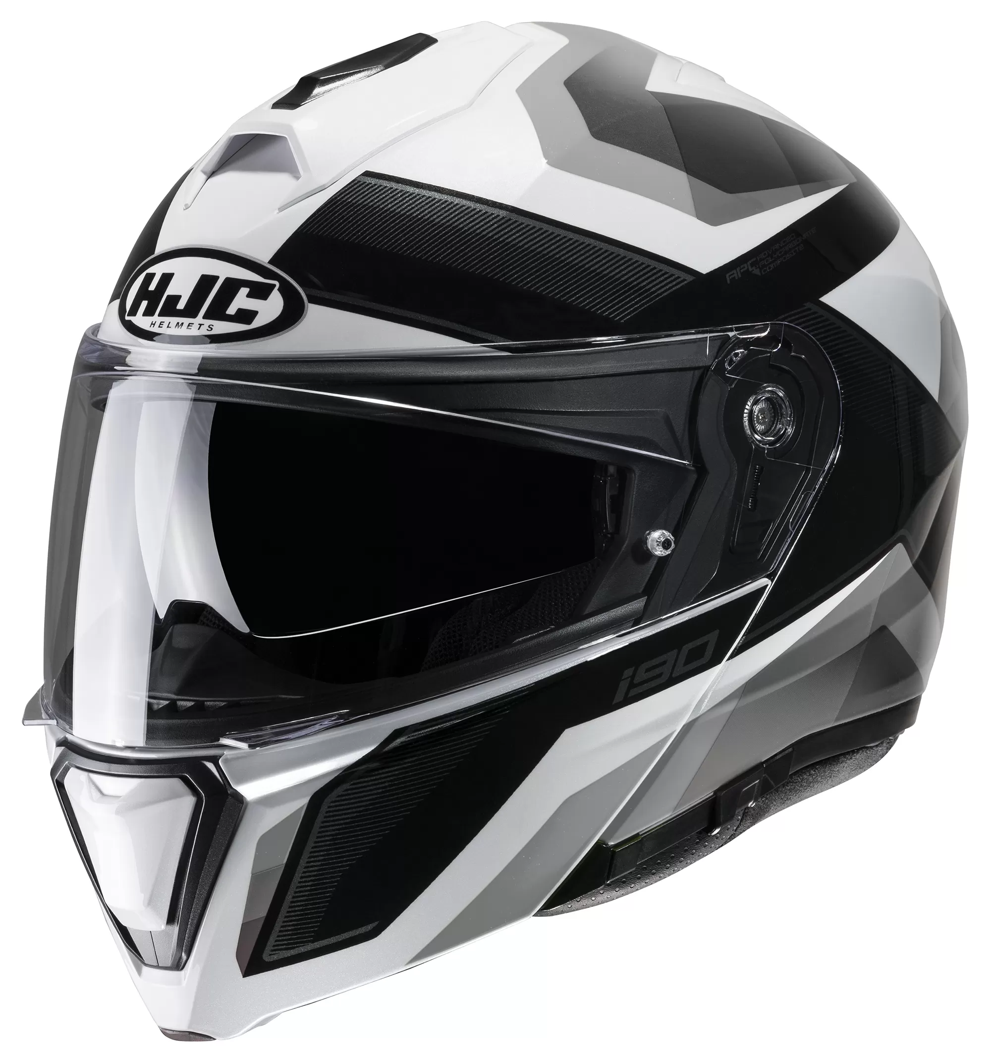 The HJC i90 Modular Helmet is a simple touring helmet with a polycarbonate shell, air-flow ventilation system and an internal sun visor. Its SuperCool moisture wicking liner system keeps you comfortable on long rides. A special groove along the temples accommodates glasses so you can see clearly even if you don’t have 20/20 vision.