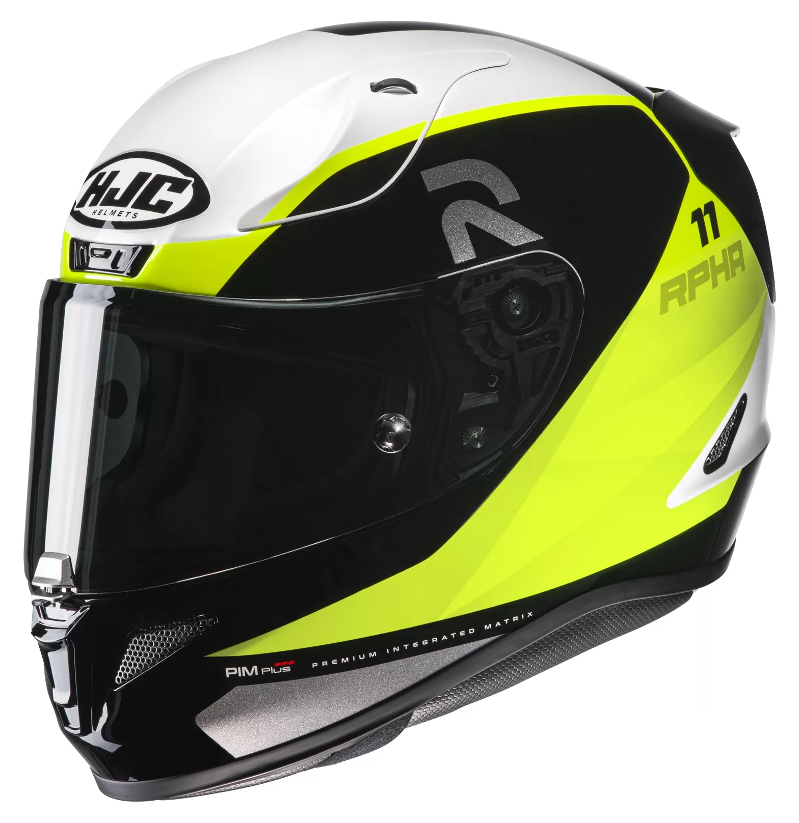 Originally built for the racetrack, the RPHA 11 Pro is HJC’s premium sport helmet, designed with an aerodynamic shell structure for extreme performance at maximum speeds. The Premium Integrated Matrix (P.I.M Plus) shell composition provides enhanced shock-resistant performance and a more comfortable and lightweight helmet using reinforcement materials that include carbon and carbon-glass hybrid fabric. The features cater to sport riders with an enlarged eye port for an increased view in a tucked position and an outstanding airflow ventilation system. Additional safety features include reflective patches on the rear neck area and an emergency release cheek pad system for safe and quick helmet removal in an emergency situation.
