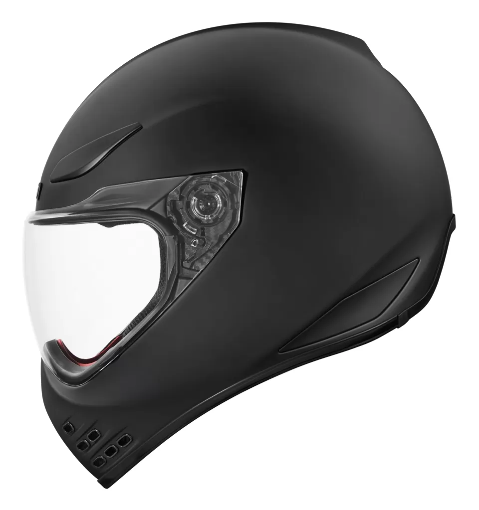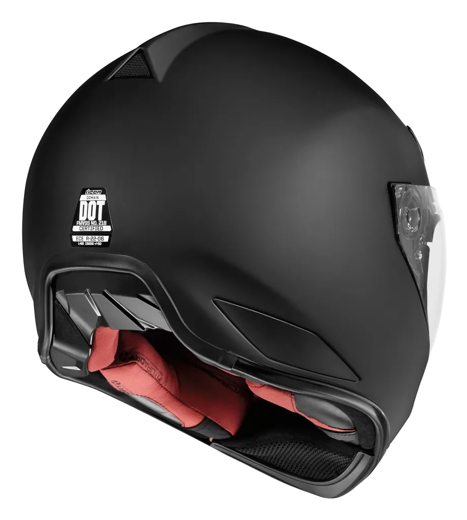 The Icon Domain Helmet features a hand-crafted FRP shell for maximum integrity with minimal weight. A prominent dorsal ridge, large brow-mounted intake vents and channeled EPS provide increased ventilation. This increased ventilation greatly enhances rider comfort when paired with the removable Hydradry liner and removable chin curtain. The Domain is also compatible with ICON’s HelmLink Bluetooth communications system, which seamlessly integrates with the helmet (sold separately).