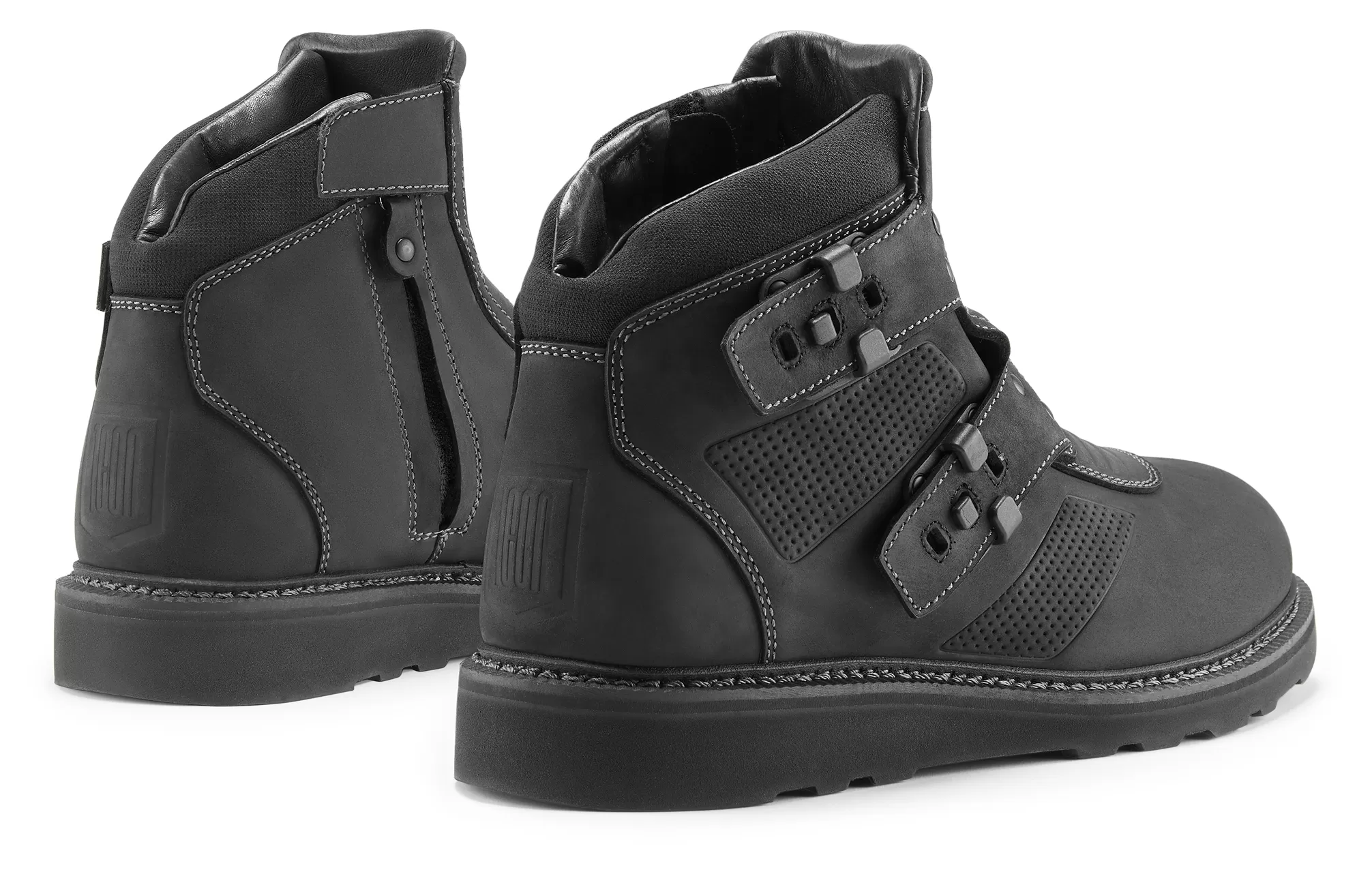 In Spanish El Bajo means “The Short One”, but the Icon El Bajo Boots come up far from short when it comes to performance and steez. Based on the design of the Elsinore Boots, the El Bajo have the same Goodyear welt sole and buckles, but in a shorter package for when full size boots just aren’t convenient for the mobile masses. Impact-resistant nylon buckles, heavy top-grain leather chassis, and reinforced toe box and heel make for a serious piece of riding footwear.