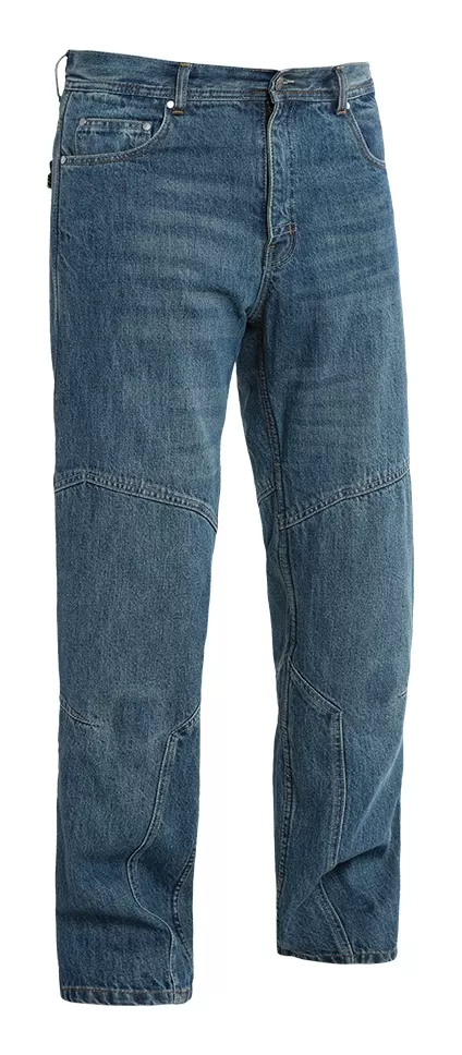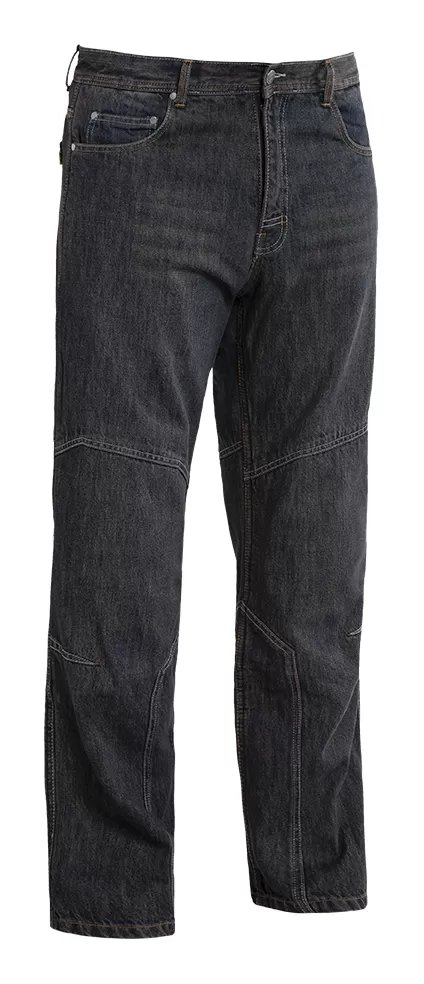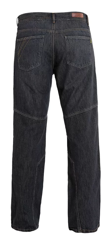 The Iron Workers Harden Jeans are a casually styled riding jean that resists abrasion and disperses impact energy. Your standard fashion jeans lack aramid panels and CE rated knee armor that come standard with the Harden jeans.Â