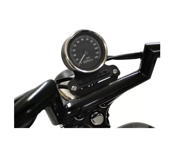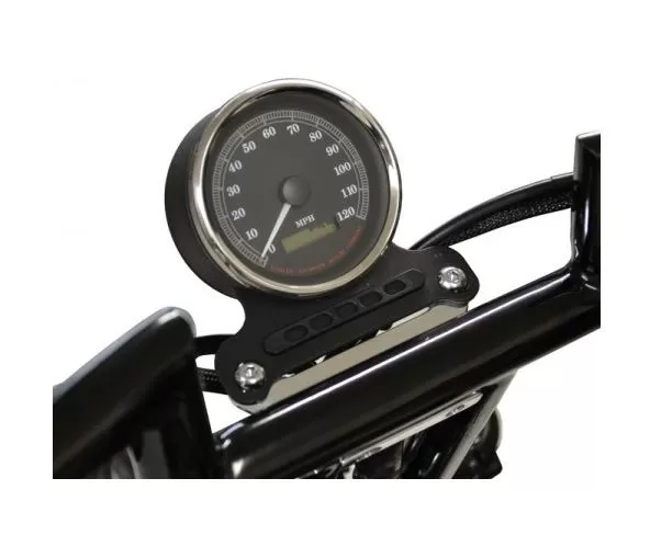 This slick bracket relocates your stock gauge and bracket to the upper portion of your T-bar risers.Â
