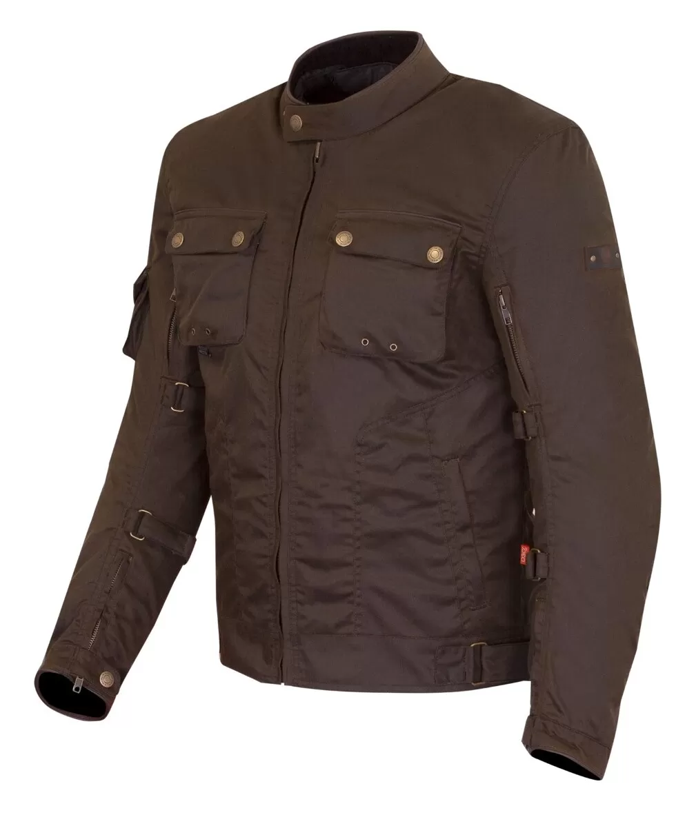 The Merlin Nomad Jacket is cafe-styled with tracker features. The Nomad takes traditional one step further by honoring its English roots with genuine Halley Stevensons tech wax fabric in the jacket’s abrasion-resistant chassis. The D30 LP1 shoulder and elbow armor even boasts its own perforation to help take the high temp edge off. Merlin goes the extra step to include a D30 Viper Stealth back and chest protectors, as well, to complete the 7 piece D3O armor set for this jacket. When rain or cooler temperatures prevail, install the Reissa liner for water and wind protection. Air cooled bikes run hot. You don’t have to.Â
