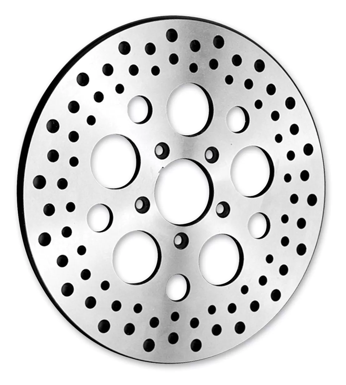 Constructed from 420 stainless steel and has a drilled braking surface to help dissipate heat produced buy brake pad friction.