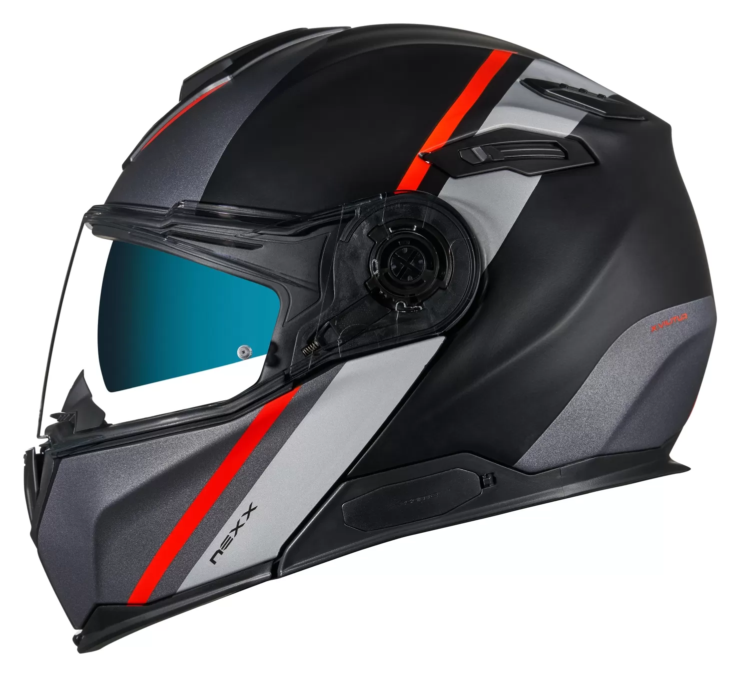 The Nexx X Vilitur helmet takes the modular helmet and injects Nexx’s signature style-meets-function ethos. The helmet features all-metal locking mechanisms to ensure a safe and secure connection between the chin bar and helmet chassis. Double rubber seals at the chin bar and vortex generators located in the chin area work together to provide improved sound isolation for a quiet riding experience. Compatible with the Nexx X-Com 2 Bluetooth headset, the helmet also includes two mounting brackets for action cameras. Featuring one-piece neck roll and cheek pads, 2 intake and 2 exhaust vents, the X-Vilitur is sure to make any ride, short or ultra-long distance, an even more enjoyable experience.