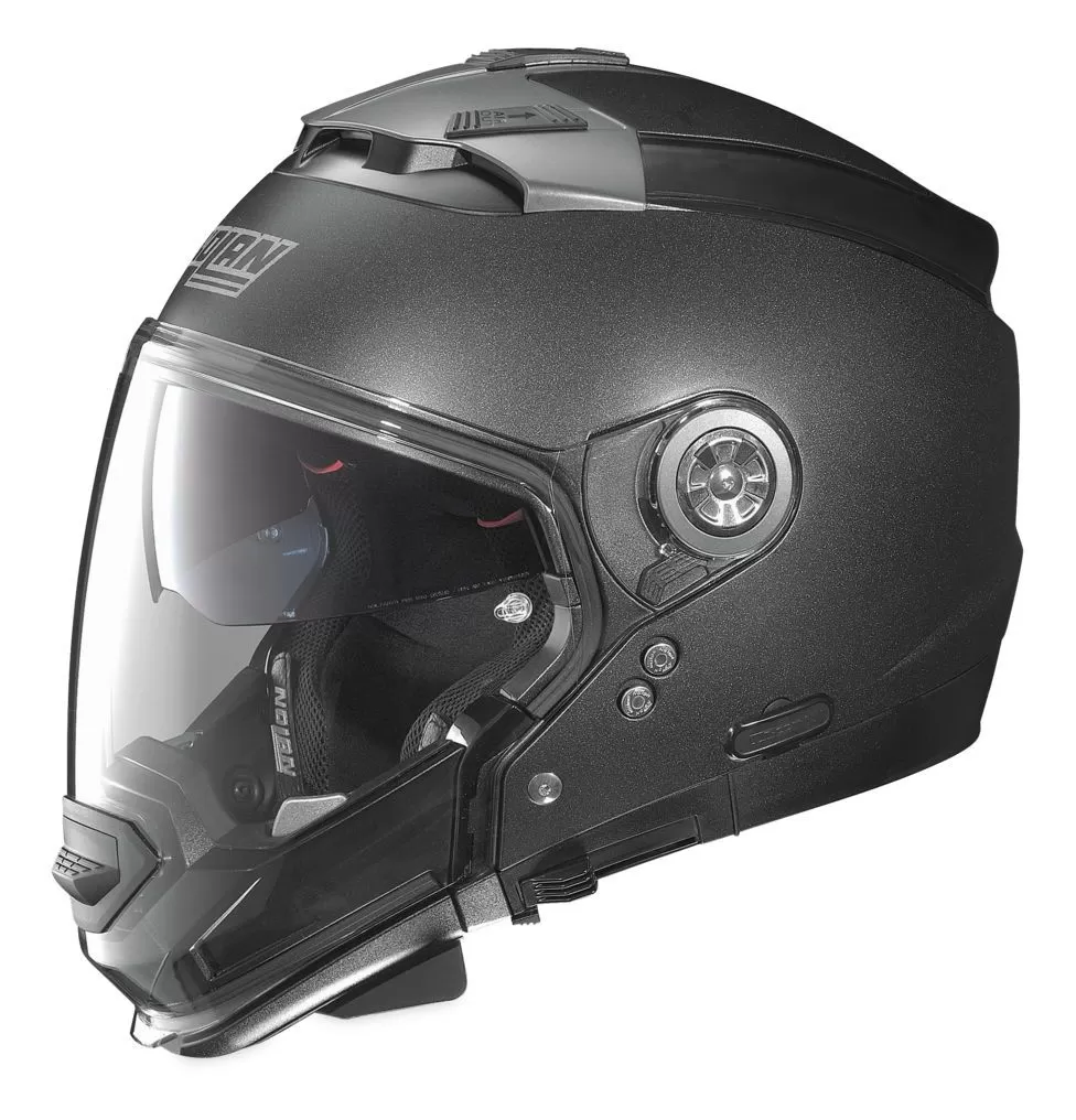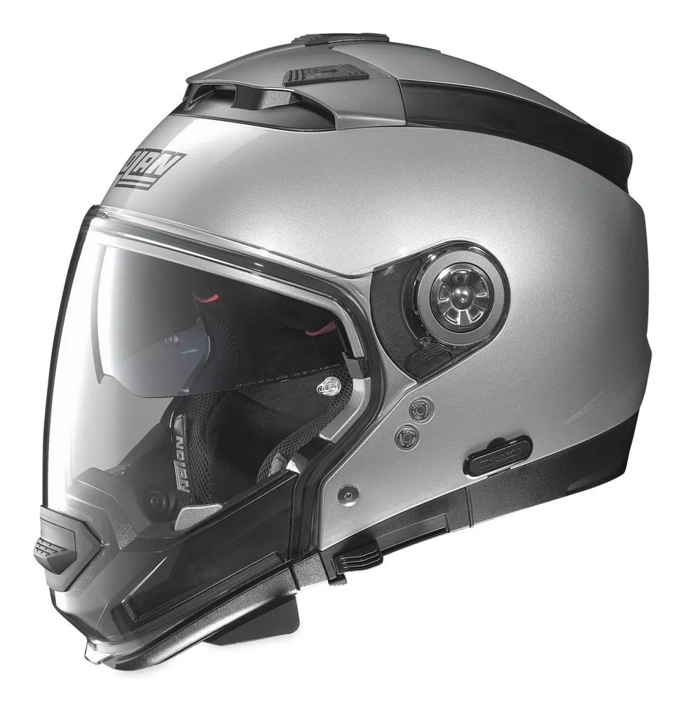 The Nolan N44 EVO Helmet has six possible configurations which you can personalize through the addition or removal of the chin bar, face shield and peak, all of which are included. With the chin bar and face shield installed, the rider can expect the same benefits of a full face helmet. With just the peak and chin bar installed, the helmet flows a great amount of air while still providing the same protection of a full face helmet. With the chin bar, face shield and peak removed it becomes a true three quarter open face helmet. This gives the rider a great range of flexibility.