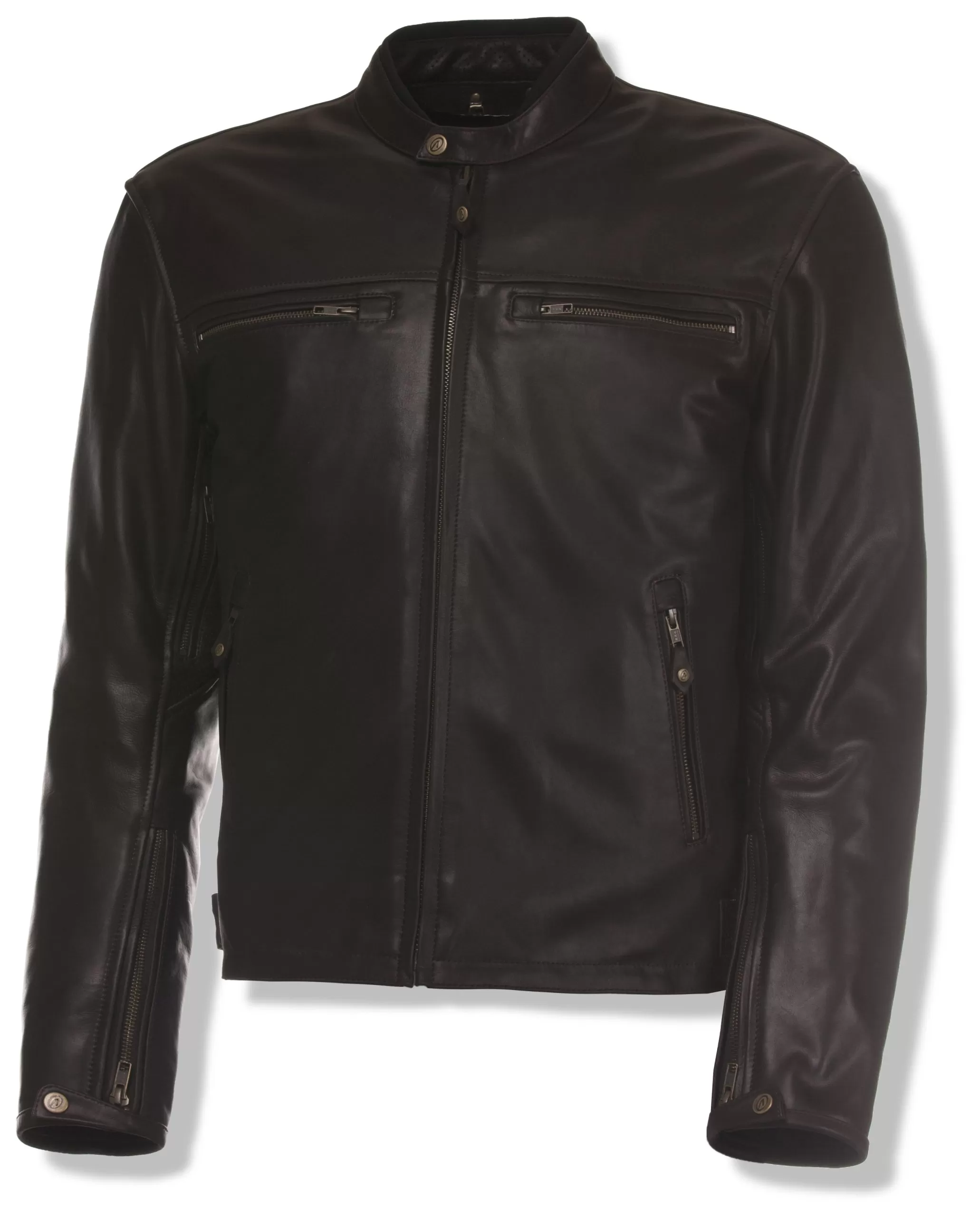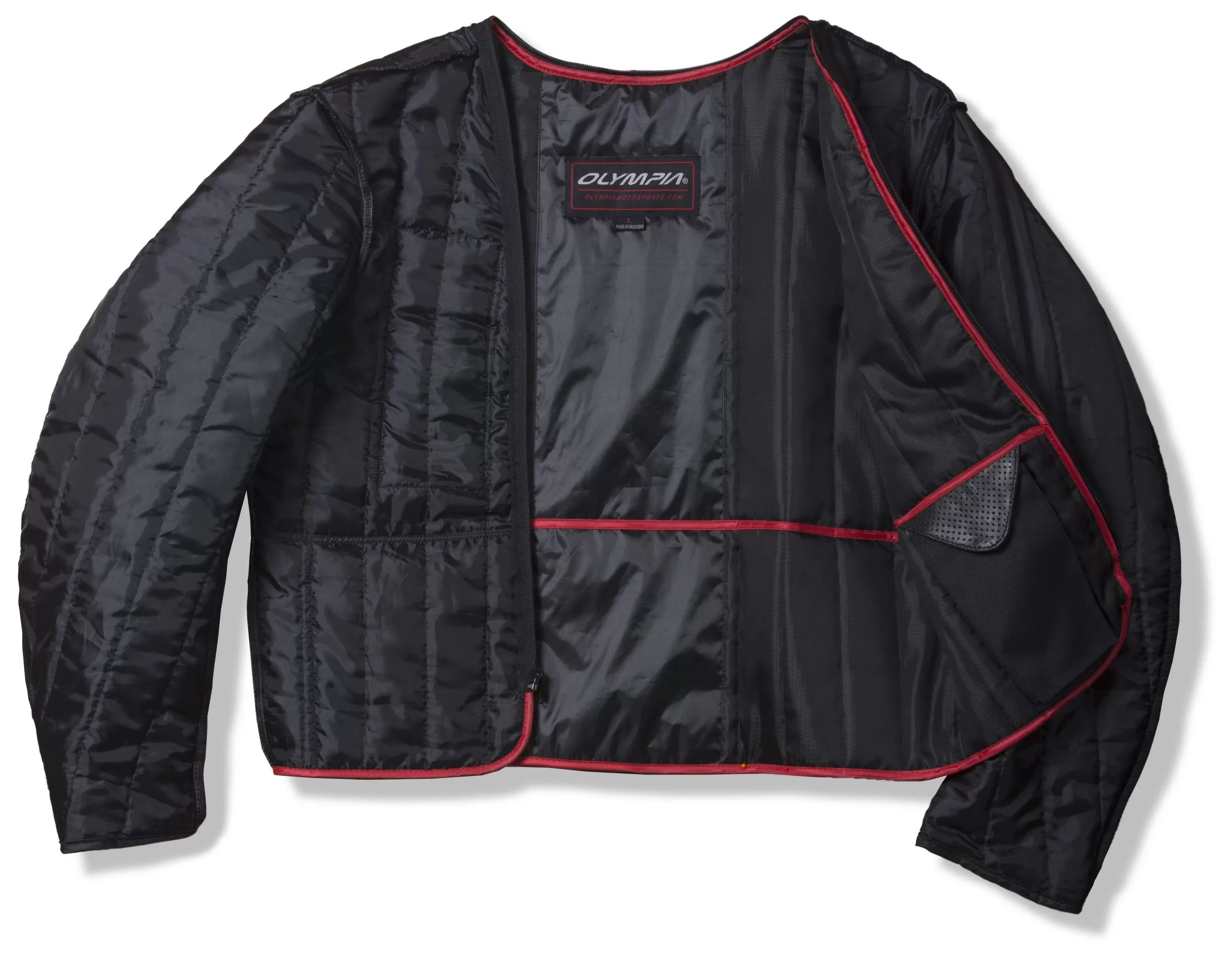 Cut from wax-finished 1.1-1.2mm top grain leather and complete with CE approved Motion Flex armor at your back as well as elbows and shoulders, the Olympia Bishop Jacket touts premium protection right out of the box. The relaxed fit allows space for the full sleeve thermal liner on cooler rides. With the thermal liner removed, the casual cut allows plenty of airflow through the perforated underarm panels and zippered vents at the upper arm and lower back, making the Olympia Bishop Leather Jacket one of the best values in seasonal versatility and quality leather construction.