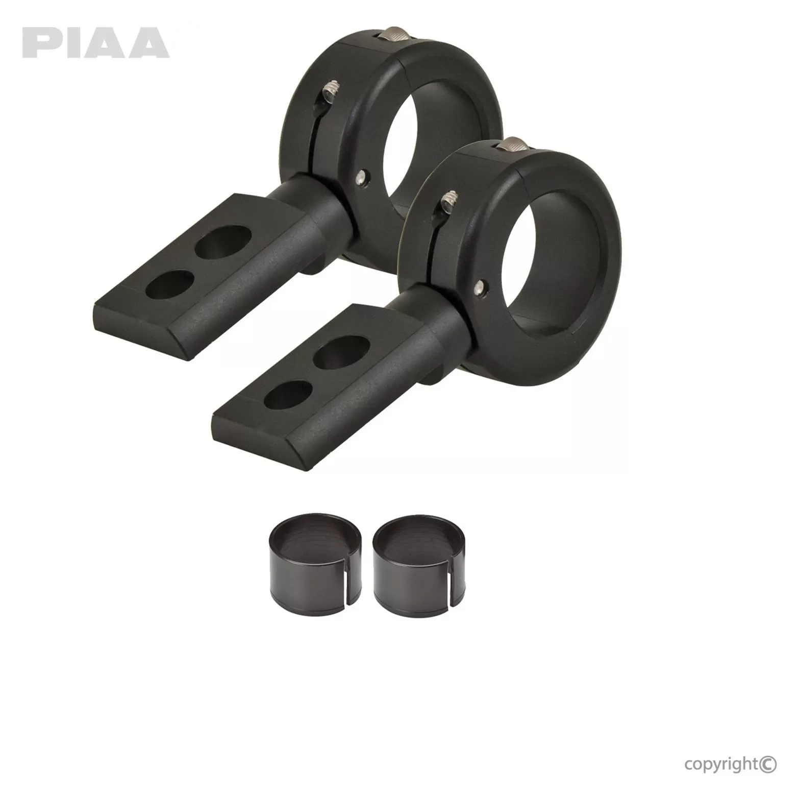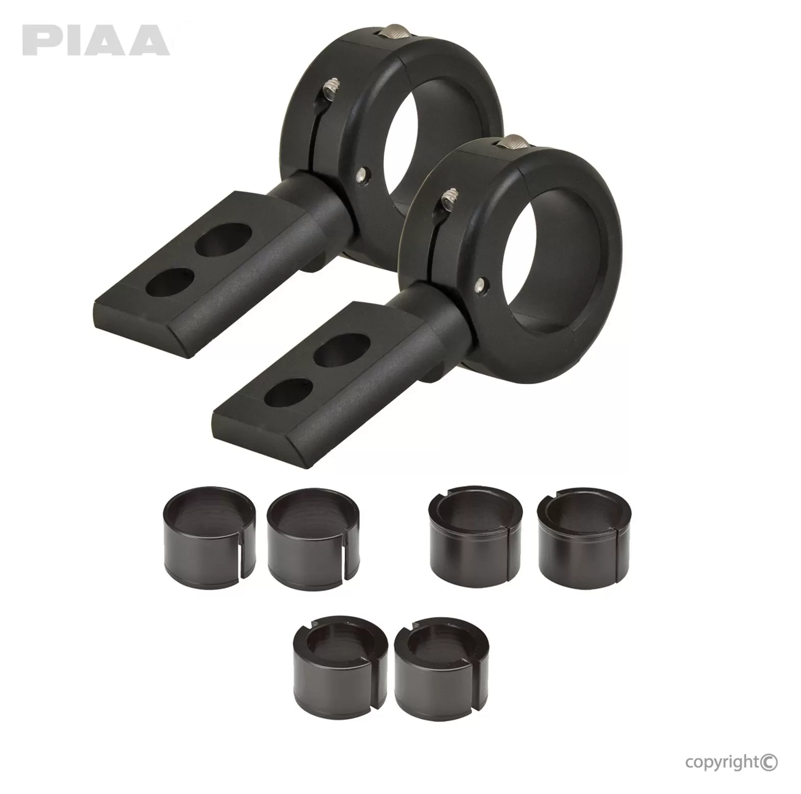 The PIAA Universal Bracket Kit allows you to mount auxiliary lights to handlebars, crash bars or highway bars.