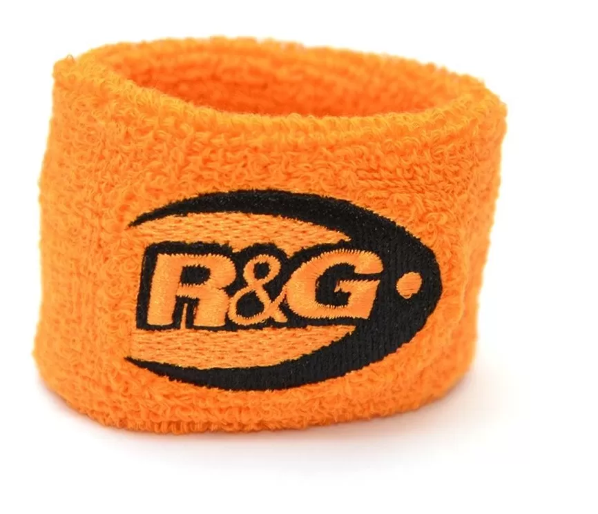 The R&G clutch and brake reservoir cover is fabricated out of orange elasticized terry cloth with a black R&G logo stylishly stitched in. This protector fits on just about any motorcycle on the market. The cover shrouds your brake or clutch reservoir preserving heat and absorbing any leaked fluids, keeping them away from tires and hand controls. To install, just slide the covering over your motorcycles clutch or brake reservoir. Ride away protected with R&G.
