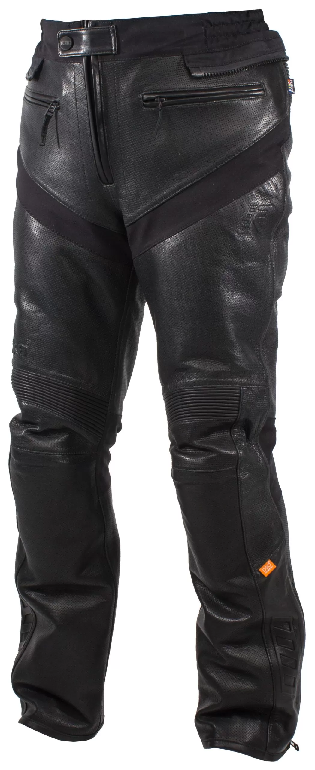 Rain in the forecast doesn’t mean that you have to hang up the Rukka Aramos Pants thanks to perforated aniline leather Corium+ laminate. This special configuration of leather and waterproofing allows the material to defend against wind and rain while still allowing the leather to breathe. Elastic panels around the groin and back of the knee make it easier to throw your leg over your bike and ride for extended time periods. Match the pants with the jacket for an abrasion resistant full leather suit that doesn’t mind the rain. Remove the thermal liner when the weather forecast is mild and add the liner in when the temperatures drop. D3O knee/shin and hip armor come standard from the factory for an exceptional combination of protection from leather and molecular armor.