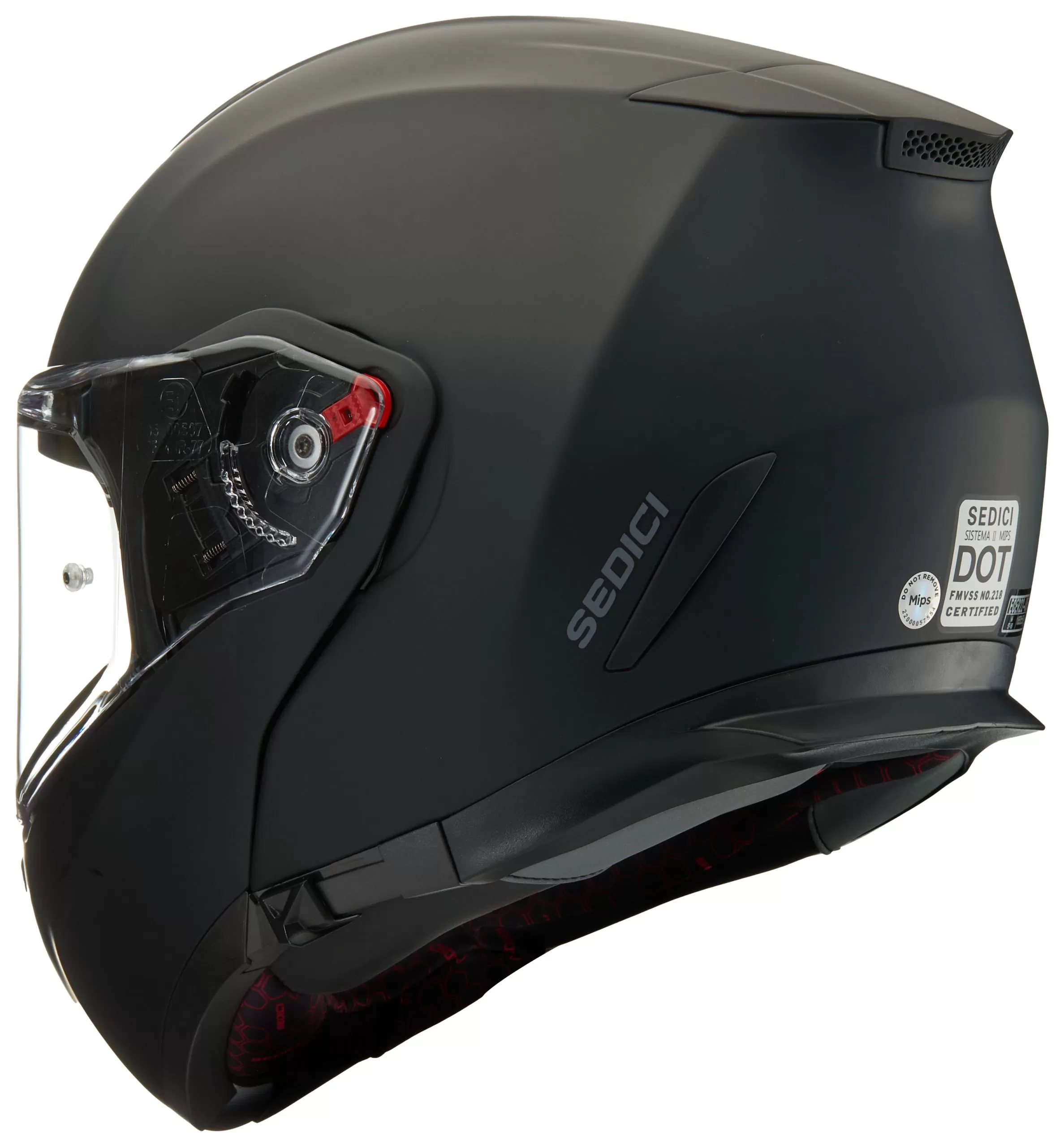 The Sedici Sistema II is already an affordable go to for commuters and touring riders alike. With the addition of Mips, Sedici has added yet another safety feature to this already very capable helmet. You’ll find a shell made from a unique blend of fiberglass and aramid fiber carefully molded into 3 shell sizes. The aerodynamic shape not only helps reduce lift at speed but helps reduce wind noise as well, all the while looking pretty sharp too. The chin bar was revisted and reinforced, making it possible to pass ECE-22.05 standards, something not every modular helmet can say.Ā