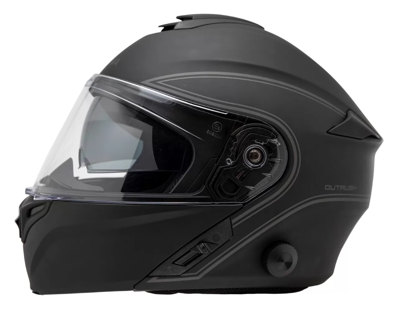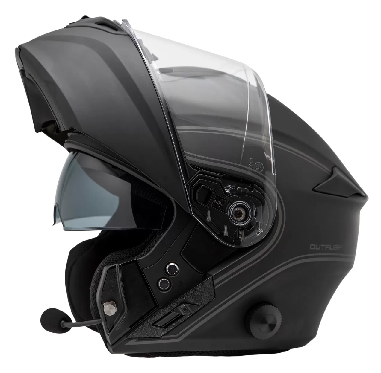 The Sena Outrush Modular Helmet is the perfect helmet for doing 9 to 5 Monday through Friday then going out on an adventure on the weekend. This helmet features Bluetooth 3.0 technology wrapped in a lightweight polycarbonate shell which eliminates the need for fussing around with speaker pads and wires. Simply grab the helmet, and hit the road.