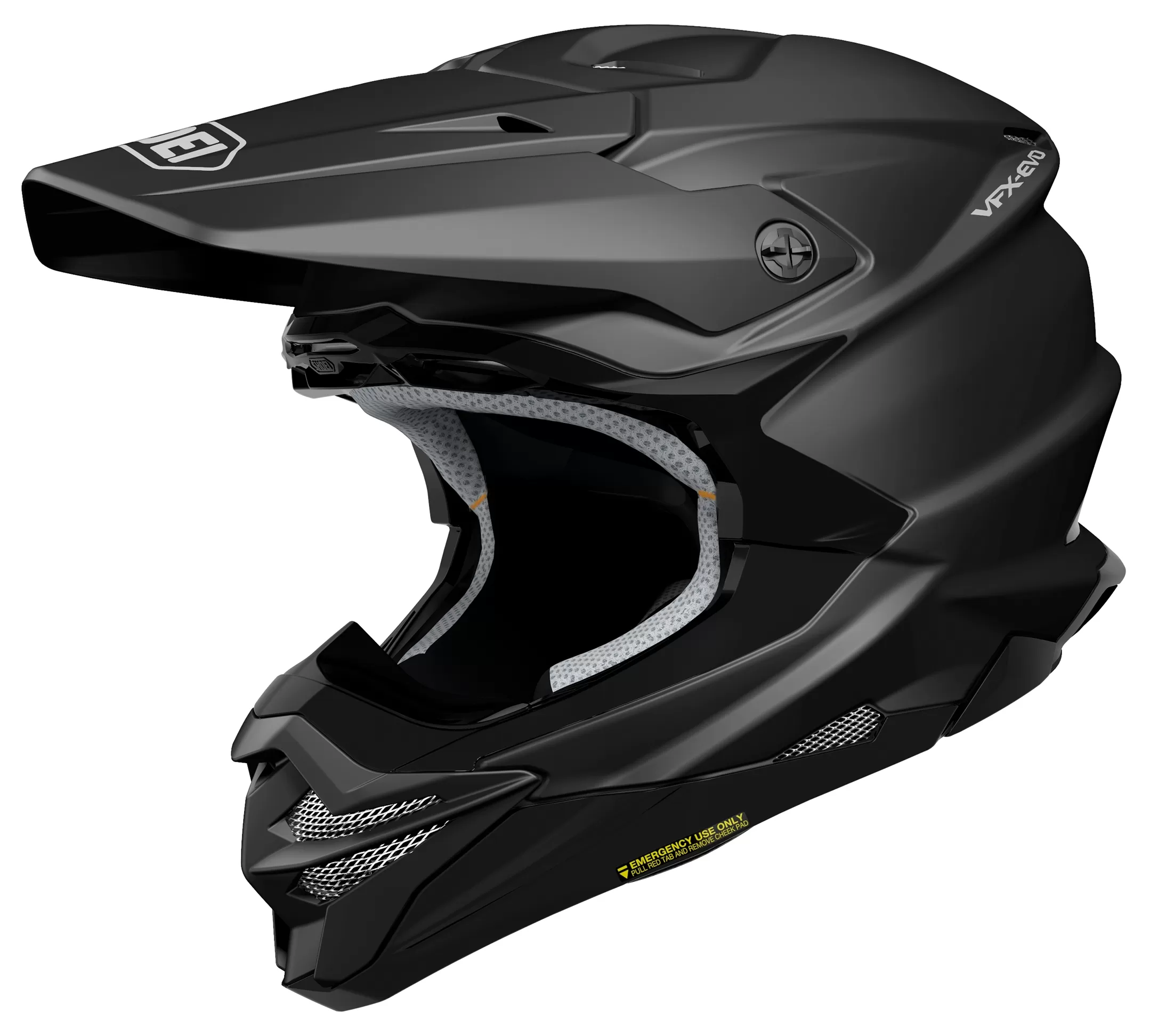 Get ready to rumble in the arena with the Shoei VFX-EVO Helmet, the next iteration of the popular VFX-W. The VFX-EVO’s liner incorporates the unique M.E.D.S. (Motion Energy Distribution System), a specially inserted module of the EPS liner designed to absorb sudden impacts by reducing rotational acceleration to the head in the event of a crash. Shoei’s in-house testing showed rotational energy to be reduced by 15% in comparison to that of the VFX-W off-road helmet. The shell is constructed with high performance AIM+ (Advanced Integrated Matrix Plus Multi-Fiber), a combination of fiberglass and organic fibers. The result is a rigid, ultra-lightweight, yet elastic structure.