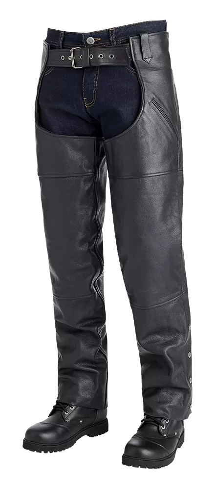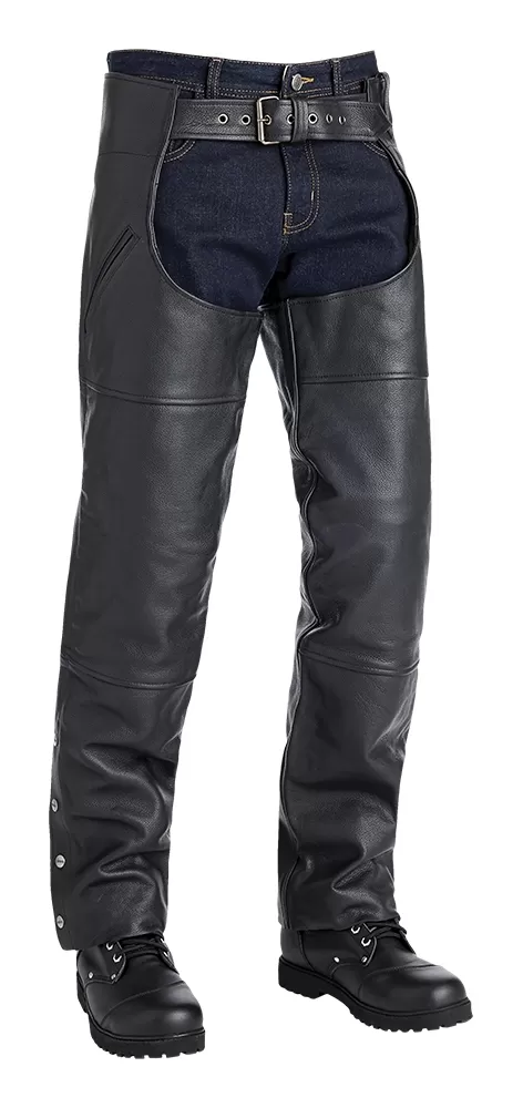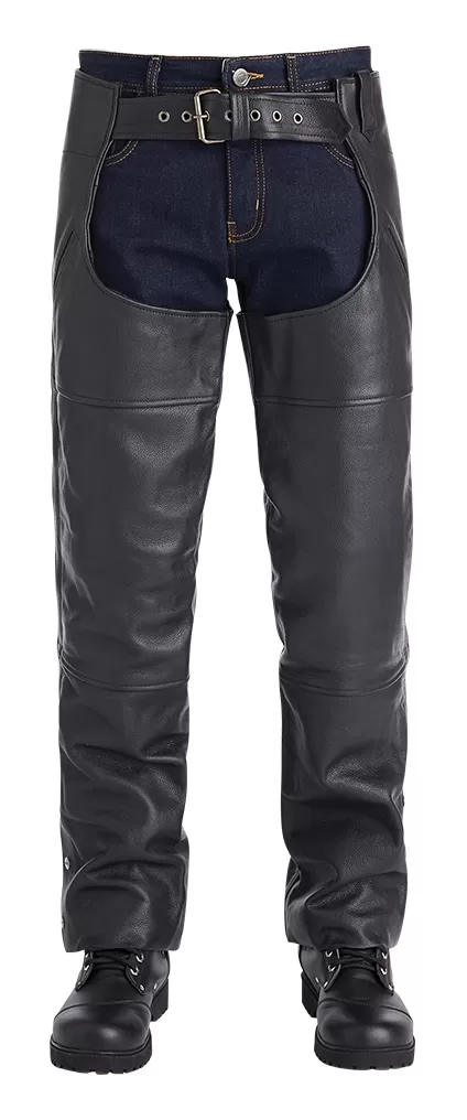Sometimes you need a little more protection than the jeans you like to wear. Throw on a pair of leather Street & Steel Richmond Chaps for those days. Made from a matte finish leather, these high uality Richmond Chaps have deep pockets and a contrasting piping for a stylish finish.