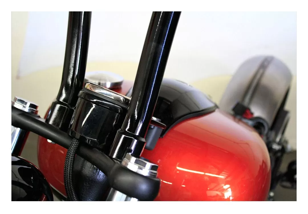These aggressive looking bars offer a clean line of sight on your Blackline. These 1 1 /4″ handlebars step down to 1″ in the clamping area for use with your stock hand controls. Made with performance in mind from the materials to the manufacturing including the polished welds for a seamless look.Â