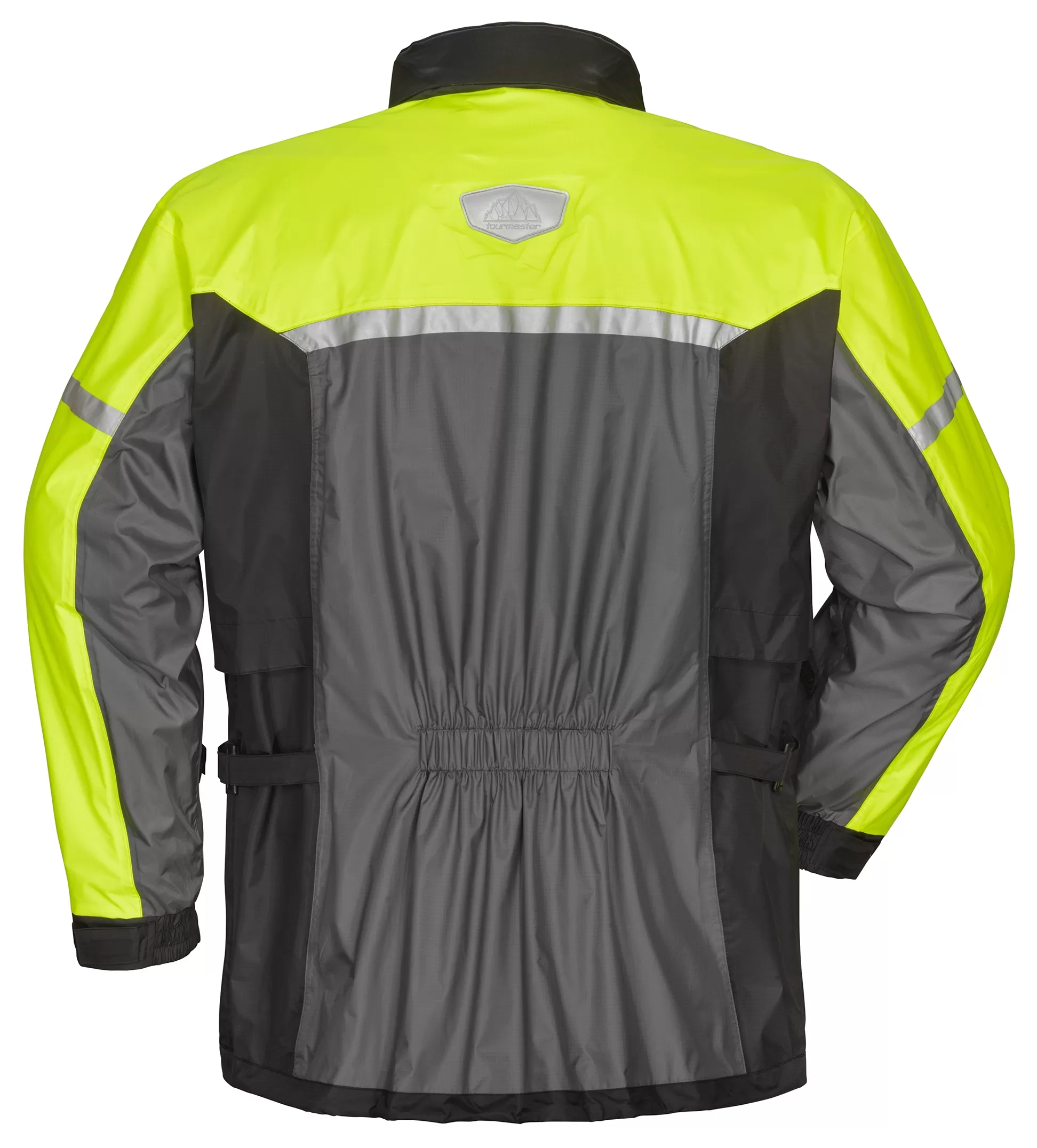 With the Tour Master Sentry Rain Jacket, staying dry never looked so good. The Sentry Jacket incorporates 360º 3M Scotchlite reflective panels on each side of the jacket to help with visibility on cloudy days. The waterproof and breathable Ripstop nylon shell features a 2-way main zipper, dual waterproof exterior storage pockets and an internal storage pocket. Nighttime riding is covered with the Tour Master Sentry as reflective panels have been added, even adding a reflective strip across the back. The Sentry Jacket features the Aqua-Barrier Under-the-Helmet-Hood. Underarm vents and a polyester mesh lining help keep the rider cool and diminish moisture build-up.